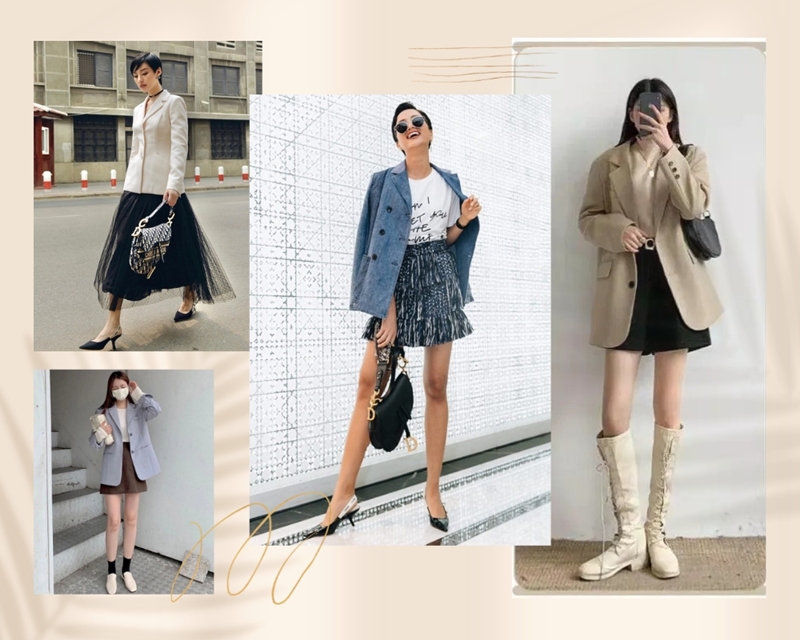 Áo blazer mix với chân váy