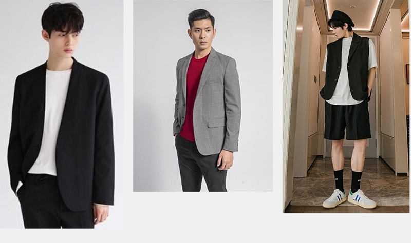 Áo Blazer nam nên kết hợp với quần short kaki và một chiếc áo phông sẽ giúp cho tổng thể outfit của các chàng trai thêm phần năng động, khỏe khoắn và sành điệu mà không sợ bị già hay quá nghiêm túc.