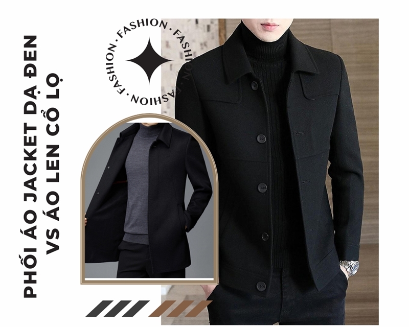 Phối áo Jacket dạ nam màu đen cùng áo len cổ lọ