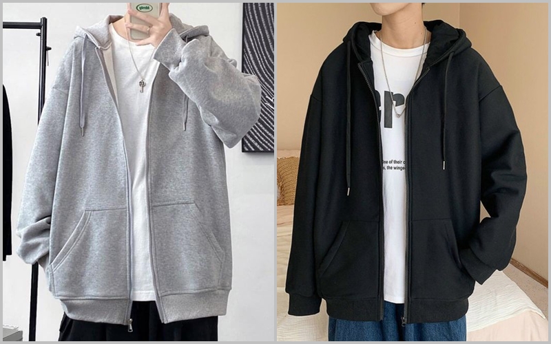 Không chỉ có các kiểu áo hoodie chui đầu mà loại áo khoác hoodie của nam cũng được rất nhiều chàng trai lựa chọn. Đặc biệt, kiểu áo khoác nam hoodie trơn là item thuộc top best-seller bán chạy nhất trên thị trường hiện nay. Đây cũng loại áo mà được rất nhiều thương hiệu lớn trên thế giới mở bán, đối tượng chủ yếu là lứa tuổi học sinh sinh viên, hoặc những chàng dancer… Bạn mặc áo này nam giới có thể tự tin diện đi học, đi chơi và mùa hè có thể dùng để khoác nắng, mùa đông thì mặc siêu ấm đều rất hợp thời trang.