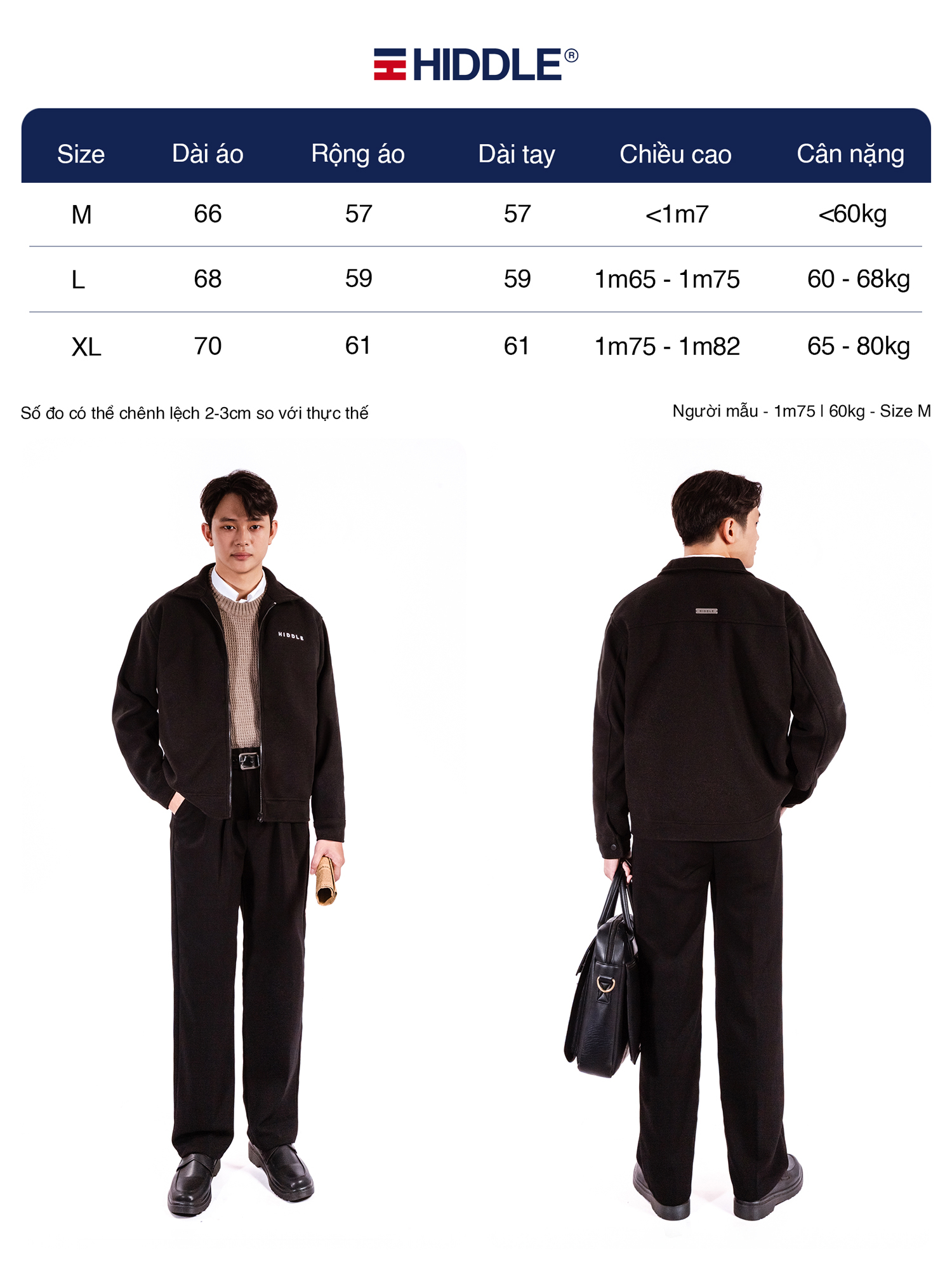 Bảng size áo khoác nam cao cấp vải dạ ép HIDDLE: