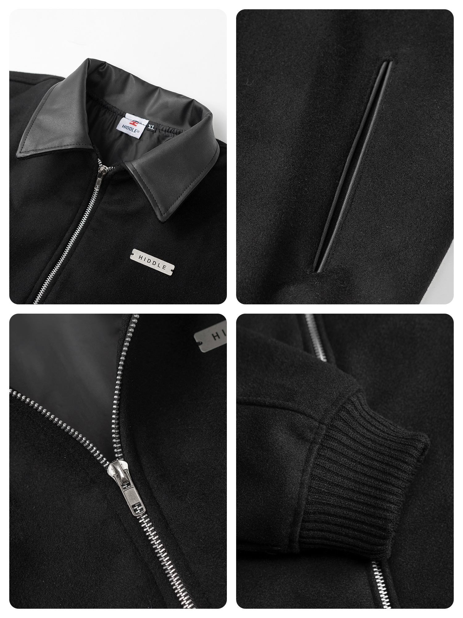 Áo khoác dạ nam hàng hiệu phối da HIDDLE sử dụng phụ liệu chắc chắn, bền bỉ