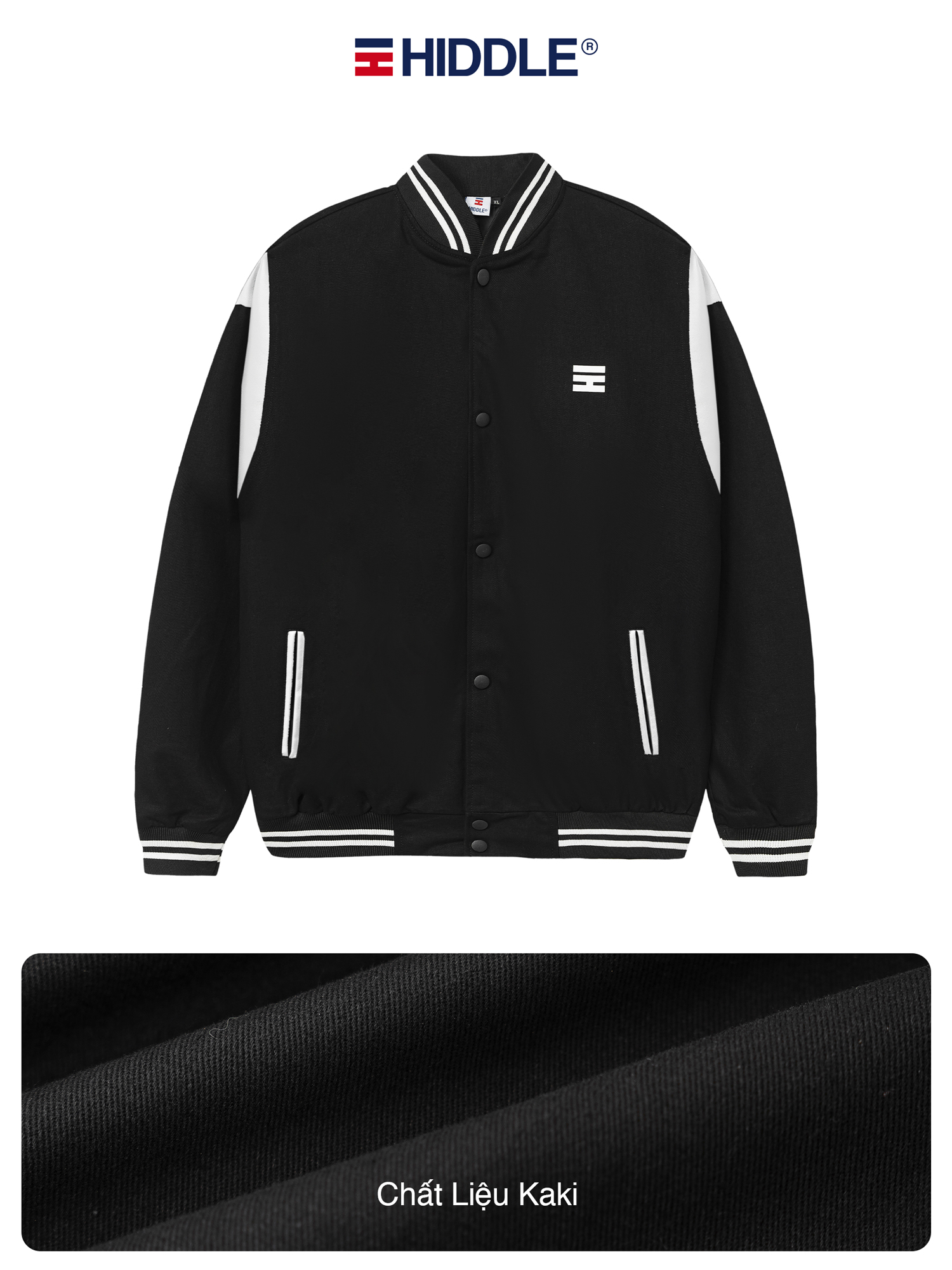 - Chất vải: Chất liệu vải kaki dày dặn được sử dụng may cho mẫu áo khoác Bomber nam Varsity cao cấp HIDDLE bền đẹp, có khả năng giữ ấm cực tốt, đem lại cảm giác ấm áp cho người mặc vào mùa đông. Ngoài ra, chất vải này còn có khả năng thấm hút mồ hôi tuyệt vời, không bó sát đem lại sự thoải mái, dễ chịu cho người mặc vào những ngày nắng nóng.