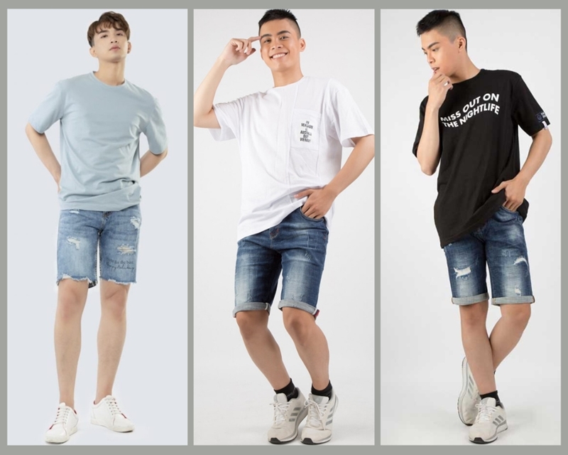1. Phối quần jean ngắn với áo thun nam form rộng