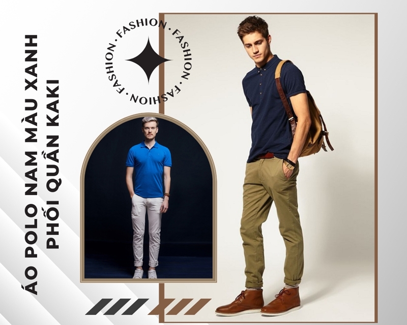 Quần kaki là trang phục khá thịnh hành và không còn quá lạ lẫm đối với nam giới. Bởi nhờ kiểu dáng thanh lịch, trẻ trung nên bạn hoàn toàn có thể kết hợp với áo polo nam xanh. Và phối thêm một vài phụ kiện như giày sneaker, mắt kính hay đồng hồ là có thể tự tin sải bước dạo phố. Với outfit này chắc chắn sẽ khiến bạn trông thật đầy ấn tượng và phong cách đấy nhé.