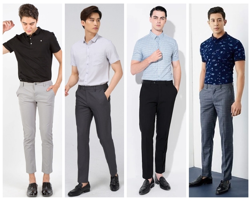- Nếu bạn muốn tạo hình tượng thanh lịch, nam tính thì có thể kết hợp áo sơ mi hoặc áo polo slimfit với quần kaki/ quần Tây. Đồng thời phối thêm một số phụ kiện thời trang khác như kính mắt, mũ và túi xách nhé!