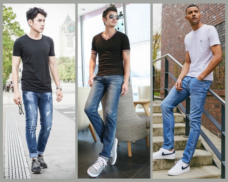 - Dáng áo thun Slimfit rất dễ mix. Bạn có thể phối thun slimfit với quần jean và kết hợp thêm đôi sneaker phong cách đường phố.