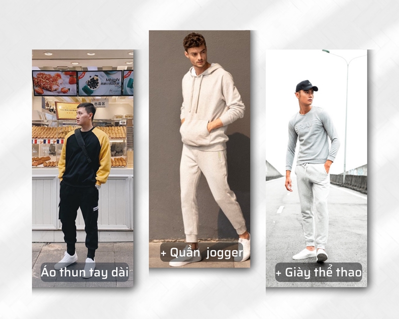 3. Áo thun nam dài tay kết hợp với quần jogger