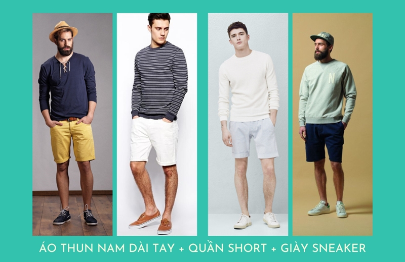 4. Áo thun tay dài nam cùng với quần short