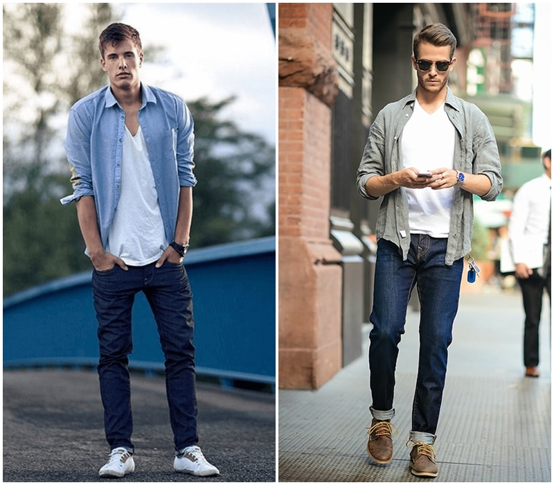 Bạn là chàng trai yêu thích sự phá cách và mới lạ? Thì đây chính là outfit dành cho bạn. Hãy thử mix áo thun nam ba lỗ với một chiếc áo sơ mi có họa tiết caro sọc vừa lịch sự lại vừa khác biệt. Lựa chọn màu sắc tương phản giữa áo sơ mi và áo ba lỗ kết hợp với quần jeans hoặc kaki sẽ là một outfit hoàn hảo để các chàng tự tin xuống phố.