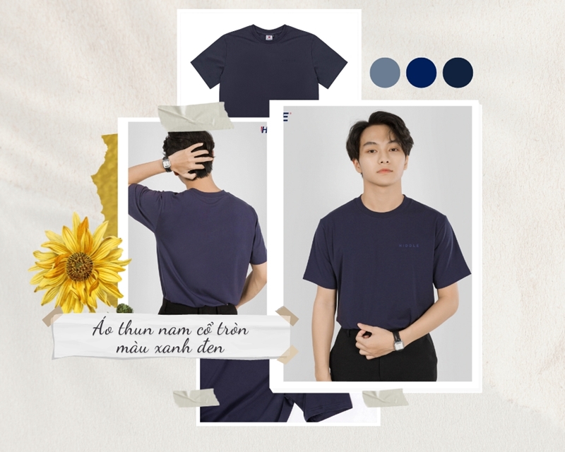 Áo thun nam cổ tròn màu xanh đen: Ưu điểm & Cách phối đồ