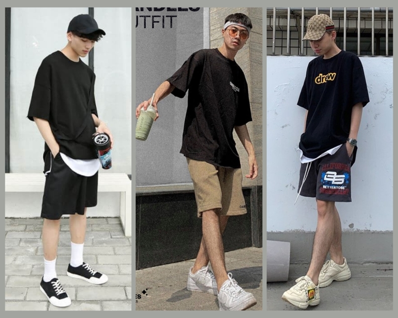 Với các mẫu áo thun đen cổ tròn kết hợp với quần short, bạn hoàn toàn có thể lựa chọn các mẫu quần short có gam màu sáng, tương phản như: trắng, xanh dương, xanh đậm, hay màu be để phối cùng.