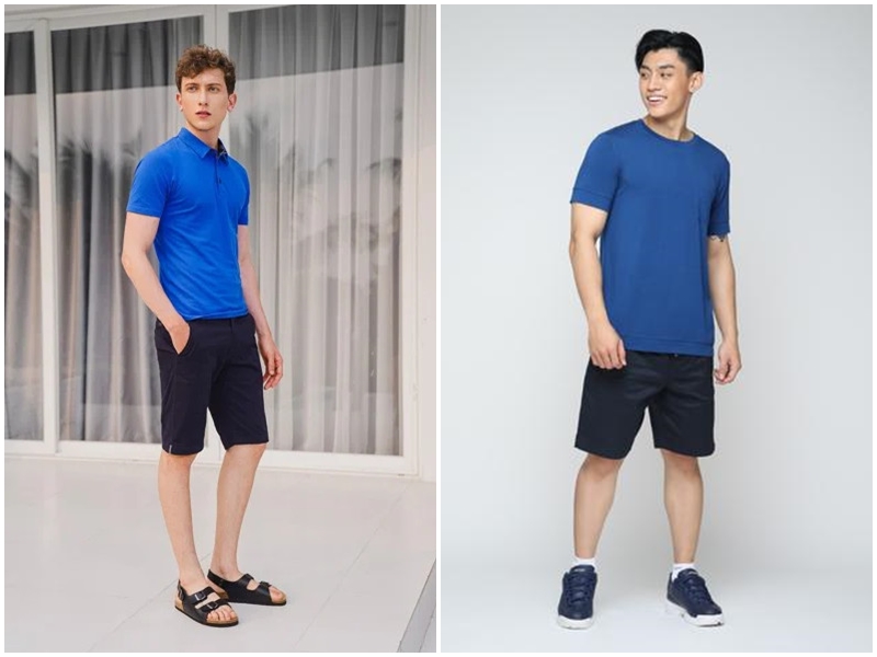 Quần short luôn được coi là con át chủ bài khi kết hợp với áo thun màu xanh dương. Mặc đồ theo phong cách này thì bạn sẽ luôn có một diện mạo trẻ trung, năng động, khỏe khoắn. Nếu không tin bạn hãy thử mix cho mình xem có thật sự xịn như lời đồn không nhé.