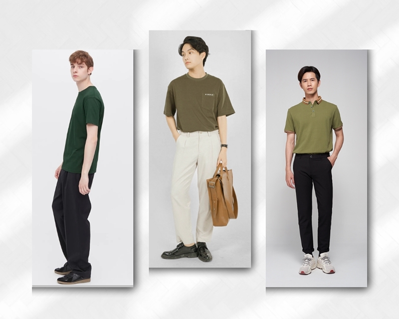 TOP 5 cách phối đồ với áo phông nam màu xanh rêu bạn không nên bỏ qua