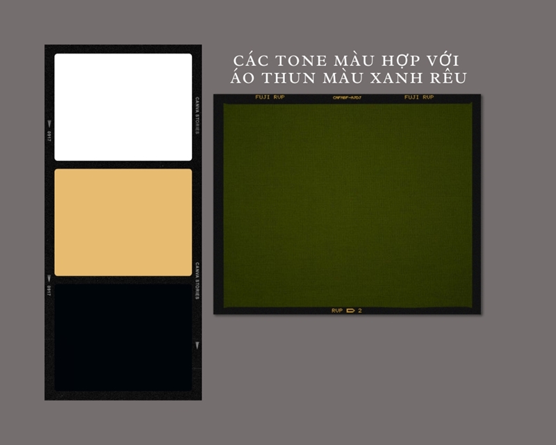 1. Các tông màu hợp với áo thun màu xanh rêu nên kết hợp phối đồ