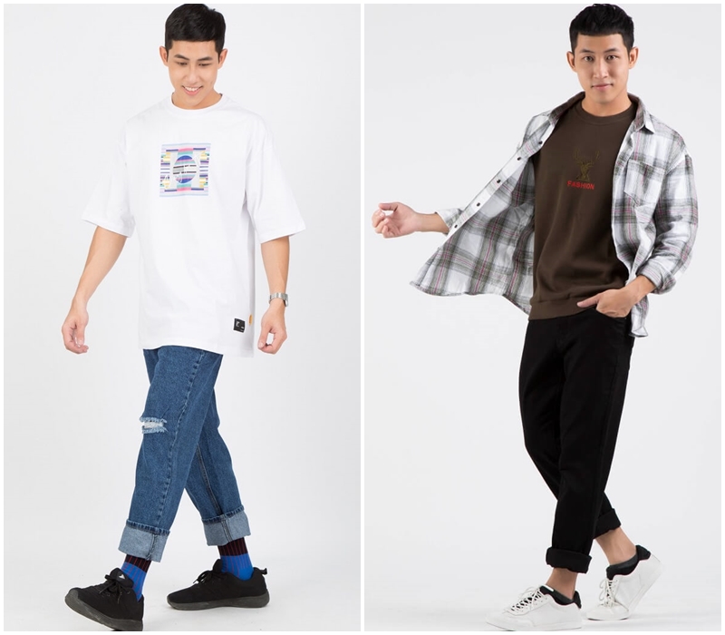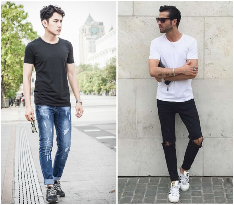 Phong cách này khá phổ biến và được các chàng sử dụng rộng rãi. Phối cùng sneaker Vans, Stan Smith hoặc Nike… đem đến vẻ đẹp hiện đại, không lo bị lỗi mốt. Sự kết hợp giữa quần Jean, áo thun nam và giày sneaker đầy đơn giản nhưng chắc chắn sẽ làm hài lòng cả những chàng trai khó tính nhất.