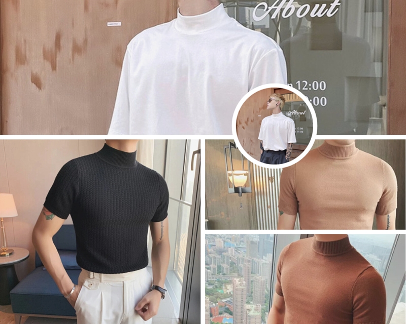 10. Áo thun cổ lọ nam tay ngắn