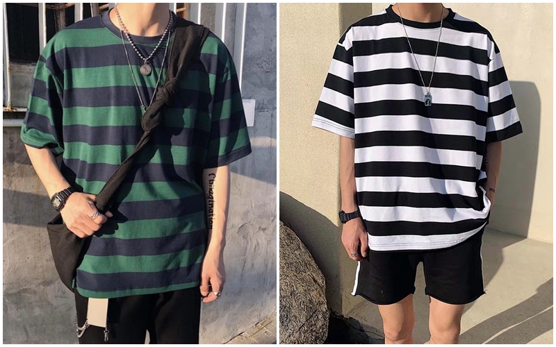 Tư vấn cách mặc đẹp với Áo thun nam sọc ngang tay lỡ từ A-Z