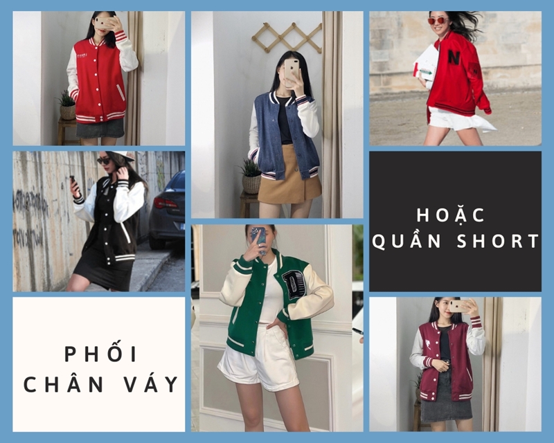 7. Phối Áo Varsity Jacket với Chân váy ngắn / Quần Short