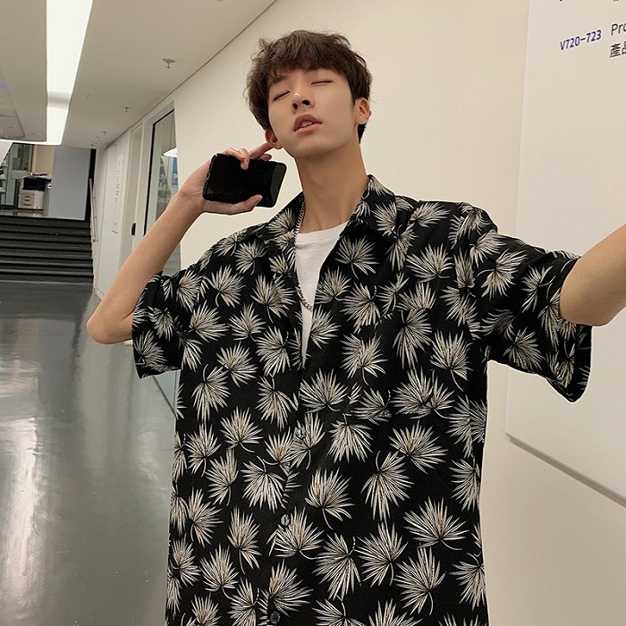 2.1 Quần short + áo thun + sơ mi họa tiết khoác ngoài