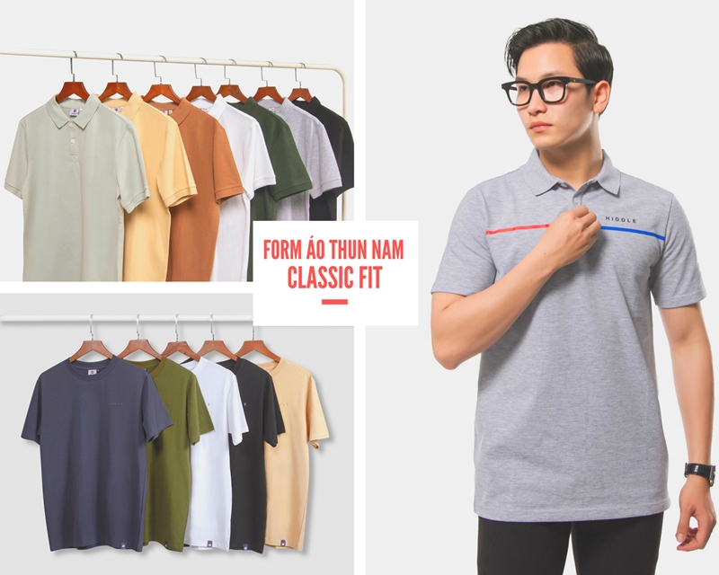 Kiểu form áo thun nam phổ biến không kém đó là form Classic Fit. Đây là dáng áo thun lâu đời nhất và được liệt vào danh mục form áo basic. Thiết kế theo phong cách cổ điển nên hầu hết áo thun nam form rộng (rộng vừa phải) đã từng không nhận được nhiều sự yêu thích của khách hàng. Tuy nhiên, giới trẻ hiện đại ngày nay cũng rất ưa chuộng các kiểu áo thun form basic này.
