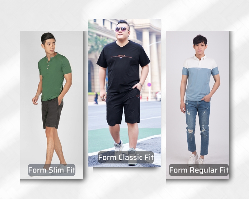Trên thị trường, hiện tại áo thun nam đang có 3 form dáng chính, đó là: Slim Fit, Regular Fit và Classic Fit. Cụ thể về đặc điểm của các loại form áo thun nam này như sau: