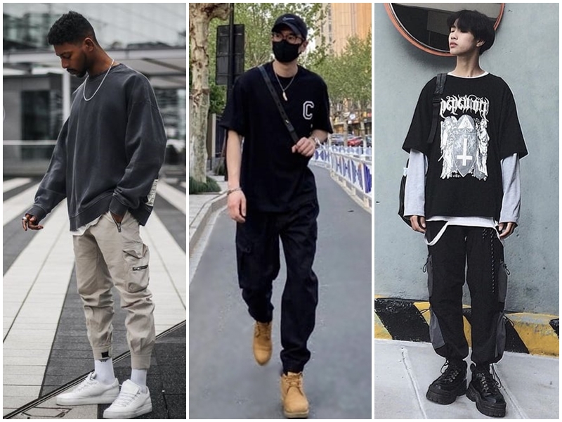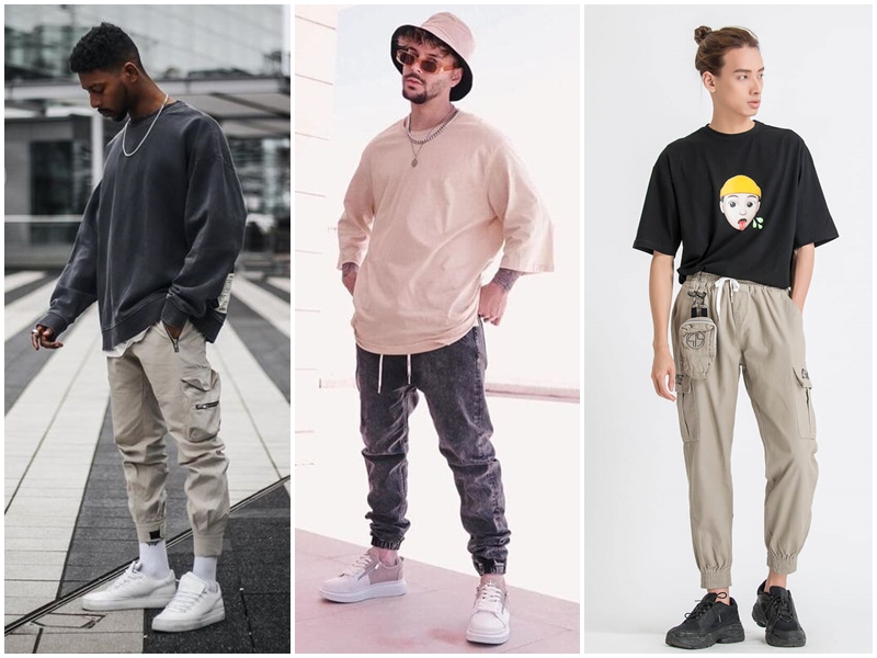 5. Outfit áo phông rộng nam tay lỡ phối với quần Jogger lưng thun