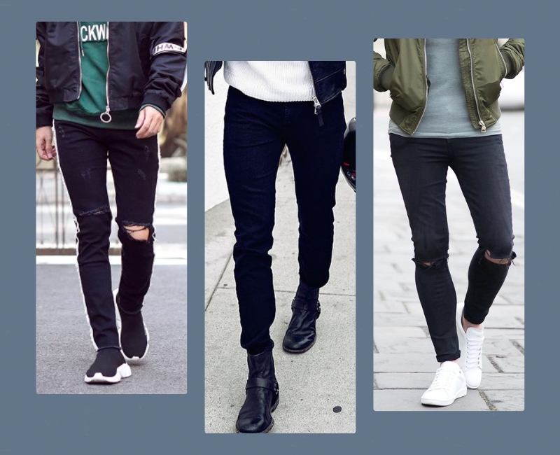 Đây là kiểu quần jean ôm hay có cách gọi khác là jean bó bởi vì chúng được thiết kế với phần ống chân ôm sát vào phần hông và đùi. Nhờ điểm nổi bật là phần ống chân có thiết kế nhỏ dần từ đầu gối trở xuống nên nó sẽ phù hợp với các chàng trai có đôi chân săn chắc, không quá to cũng không quá nhỏ. Ngoài ra, kiểu quần Skinny fit jean còn có thể kết hợp được với tất cả các áo như áo thun form rộng hay áo ôm body cũng đều phù hợp.