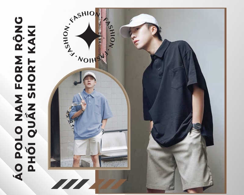 10. Áo polo nam form rộng phối với quần short kaki