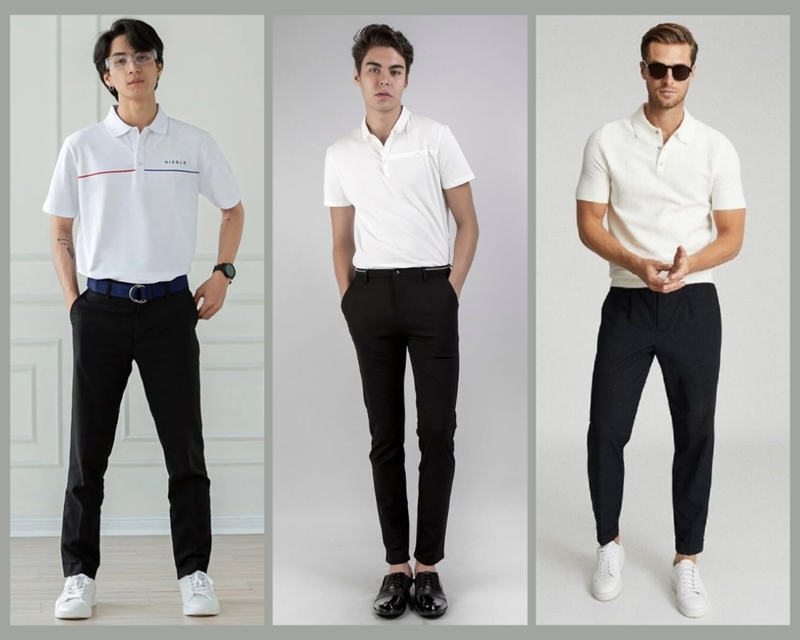 7. Phối áo Polo nam trắng với quần tây đen