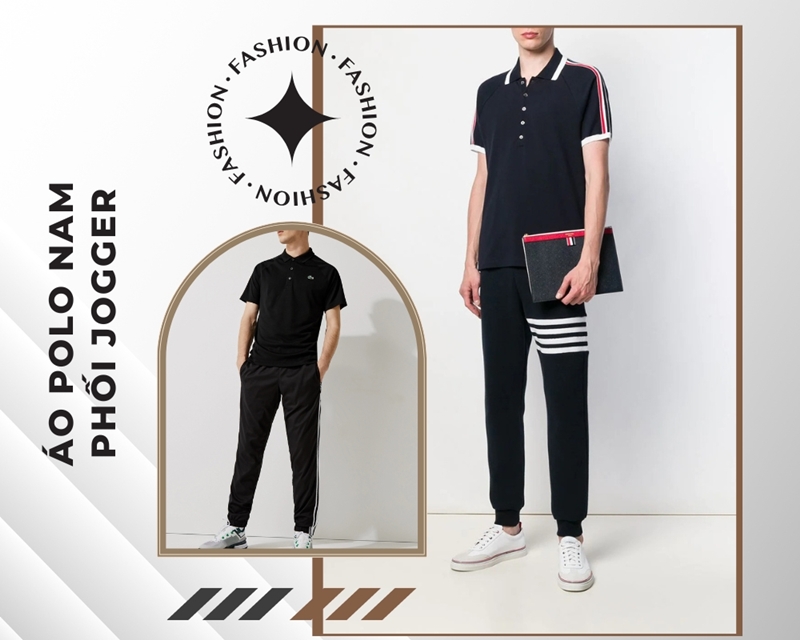 15. Áo polo nam phối với quần Jogger + giày sneaker