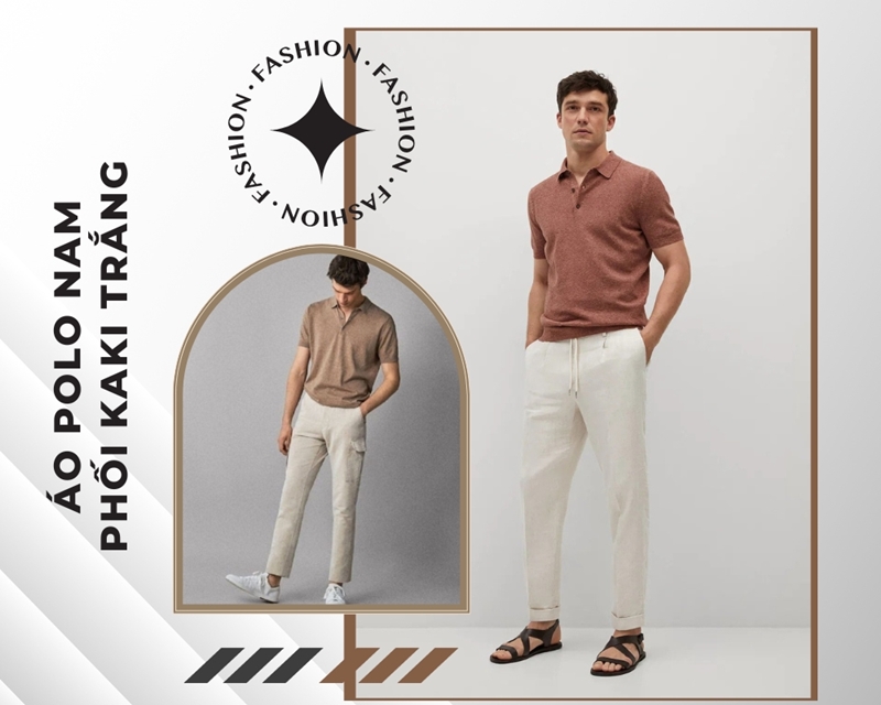 14. Áo polo nam phối với quần kaki trắng