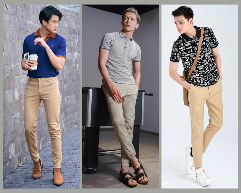 12. Cách phối áo polo trơn nam với quần kaki màu be