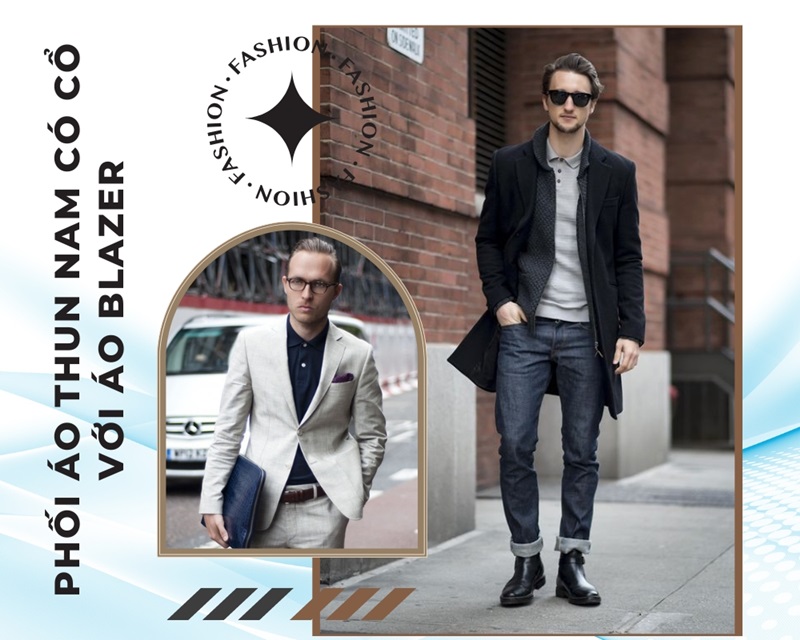 Nếu bạn theo trường phái sành điệu, sang trọng thì áo thun có cổ mặc với gì hợp nhất? Trong trường hợp này, bạn có thể phối áo thun nam có cổ cùng với quần Tây hoặc quần Jean cùng một chiếc áo blazer khoác ngoài.