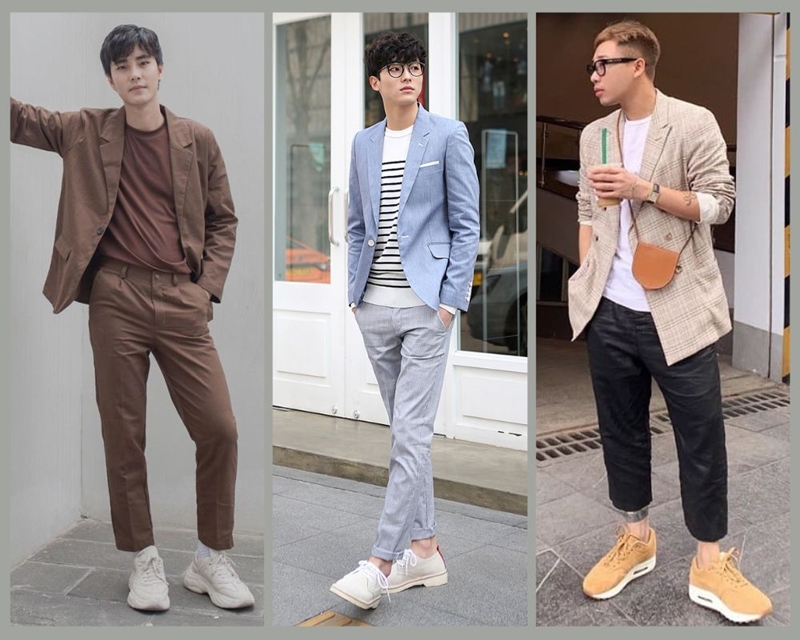 Quần kaki áo thun nam phối áo khoác blazer
