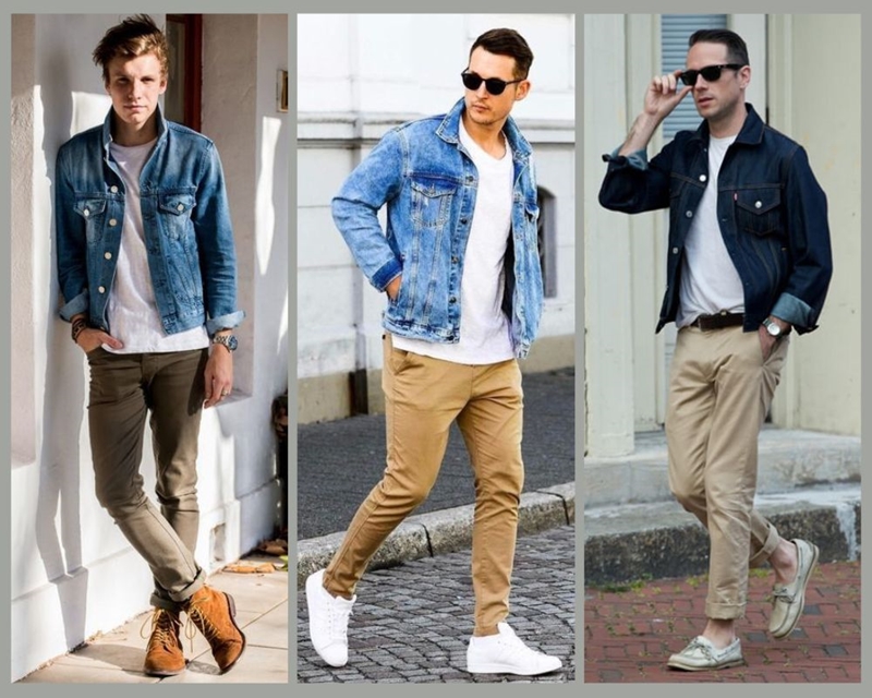 Phối quần kaki nam với áo thun và áo Jacket Jean