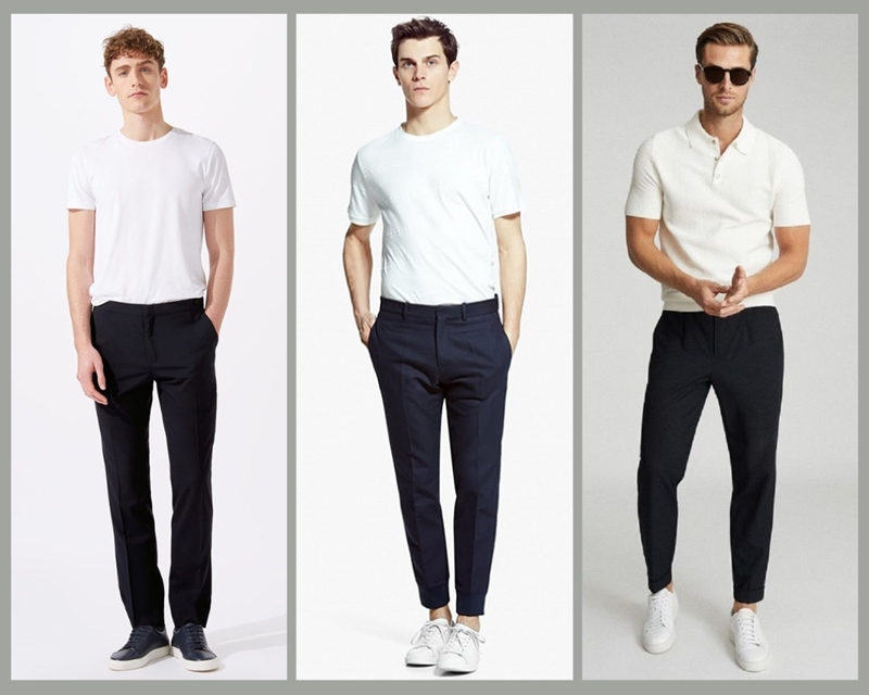 Cách phối quần tây với áo thun nam kết hợp với giày thể thao được xem là set đồ điển hình mà hầu hết mọi chàng trai lựa chọn. Với style style quần tây áo thun nam kết hợp giày thể thao / giày sneaker không chỉ mang phong cách khỏe khoắn, vô cùng năng động mà còn thể hiện được lịch sự, thanh lịch.