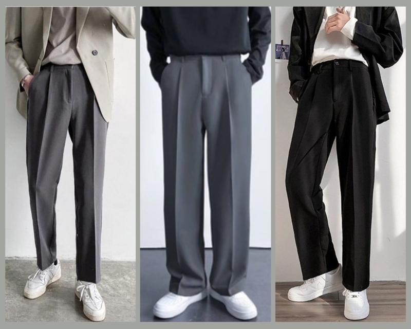 Không thể phủ nhận sự thoải mái mà quần tây ống rộng mang lại cũng như phù hợp với những chàng trai có khuyết điểm chân vòng kiềng, giúp che giấu một cách khéo léo. Outfit quần tây ống rộng với áo thun nam sẽ mang đến cho bạn một diện mạo hợp xu hướng vừa trẻ trung, hiện đại với phong cách đầy cuốn hút.
