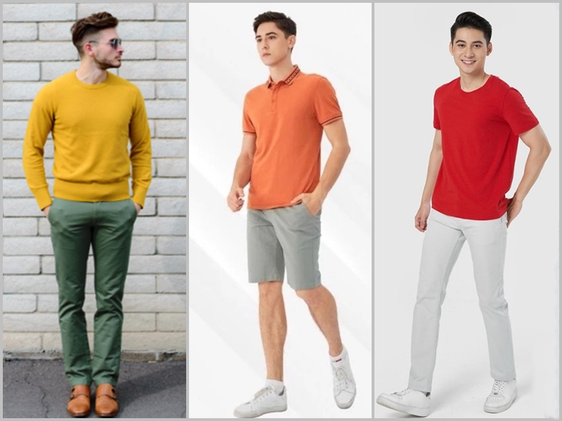 Màu sắc luôn là yếu tố khiến chàng trai nổi bật hơn giữa đám đông và nếu như các chàng thường xuyên mặc các màu cơ bản như đen, xanh, xám thì hãy thay đổi phong cách thời trang của mình hơn. Hãy thử sử dụng các màu sắc nổi bật như màu đỏ, màu vàng, màu cam,... để diện mạo của mình trông nổi bật hơn. Nhưng các chàng cũng cần phải lưu ý phối màu tổng thể trang phục luôn hài hòa với nhau và không bị đối chọi lẫn nhau.