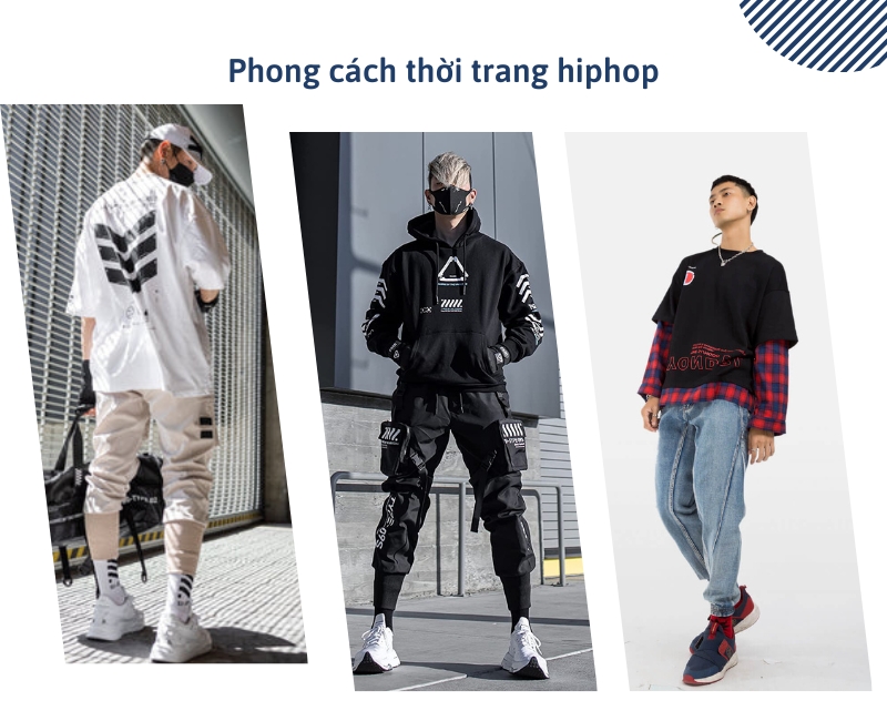 Phong cách thời trang hiphop nam là phong cách ăn mặc đậm chất streetwear, được lấy cảm hứng từ văn hóa hiphop và đường phố. Phong cách này thường sử dụng các chất liệu như denim, nỉ, da, và cotton, với các mẫu thiết kế đặc trưng như áo hoodie, áo bomber, áo thun oversized, quần jogger, quần jeans ống rộng, và giày sneaker. Màu sắc thường sử dụng trong phong cách này là màu đen, trắng, xám, và các màu sặc sỡ như đỏ, vàng, xanh lá cây.