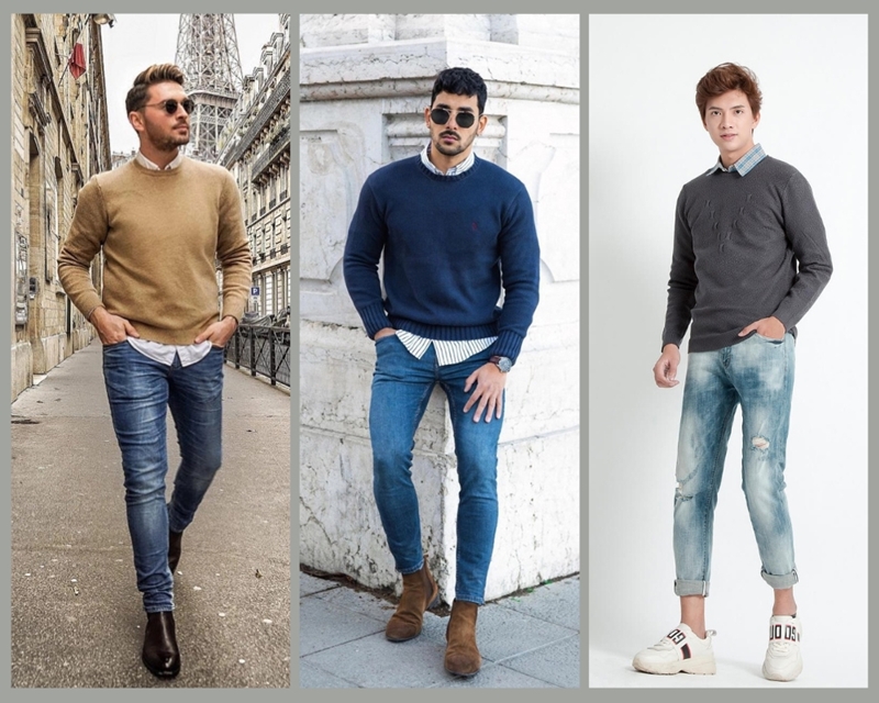 Sự mới mẻ và phá cách, năng động là những điều khi nói đến phong cách phối đồ giữa áo sơ mi mix quần jeans kết hợp với áo sweatshirt. Phong cách phối đồ này khi thêm những phụ kiện như túi xách, mắt kính thời trang thì bạn không khác gì một chàng trai nam tính, hiền lành và đầy cuốn hút rồi đấy.