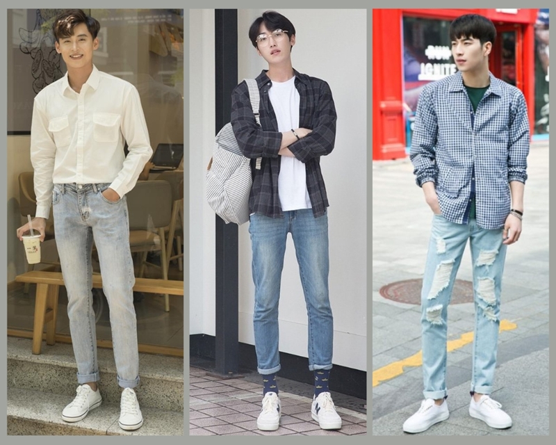 Sự kết hợp giữa áo sơ mi + quần jeans + giày sneaker là một trong những phong cách phổ biến của các sao Hàn. Theo đó, cách phối đồ này sẽ rất phù hợp với những chàng trai theo đuổi phong cách năng động và trẻ trung. Không những thế, set đồ này có thể kết hợp với nhiều phụ kiện giúp tạo ra một outfit rất gần gũi và tự nhiên. Khi trưng diện bộ ba đa năng này bạn có thể đi chơi cùng bạn bè, dạo phố sẽ giúp bạn thoải mái hoạt động và tràn đầy sức hút.