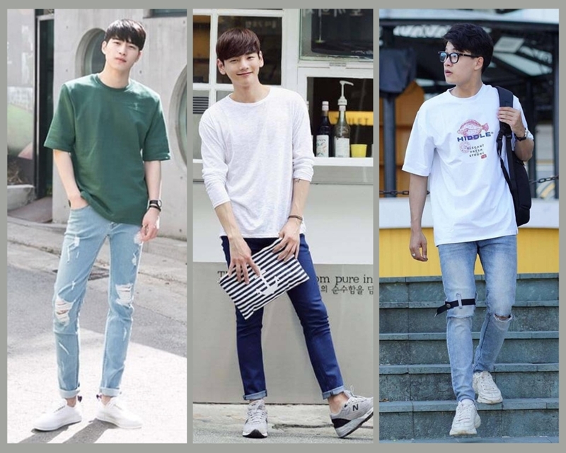 Một trong những cách phối đồ nam theo phong cách thời trang Hàn Quốc thì phải kể đến outfit áo thun basic với quần jeans. Phong cách này sẽ giúp các chàng trai thể hiện được cá tính và vô cùng ấn tượng khi đi dạo phố, đi chơi.