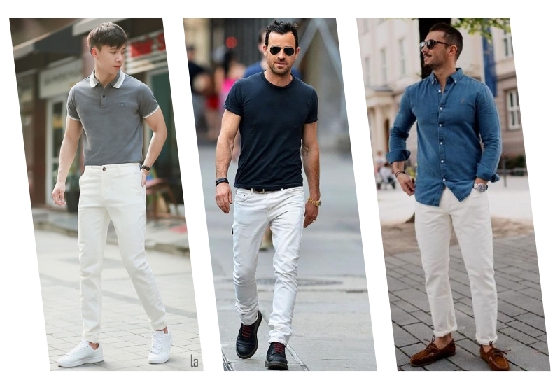 Khi mặc jean trắng tới chỗ làm các chàng hãy phối trang phục sao cho phù hợp để có vẻ ngoài hoàn hảo nhất. Hãy kết hợp với các màu trung tính hoặc gam màu ấm như: áo màu xám tro, giày màu đen hoặc đồ cùng tông màu giúp các chàng trai có một phong cách lý tưởng.