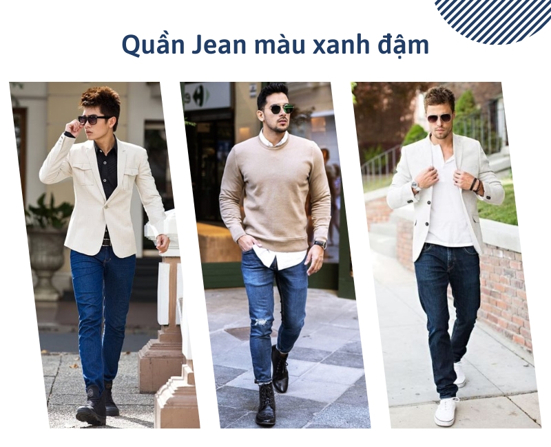 Màu xanh đậm chính là màu sắc tự nhiên nhất của chiếc quần jean mang phong cách thời trang lịch sự nên rất thích hợp làm việc tại nơi công sở. Các chàng trai có thể kết hợp cùng với áo sơ mi hay áo thun đều rất phù hợp.